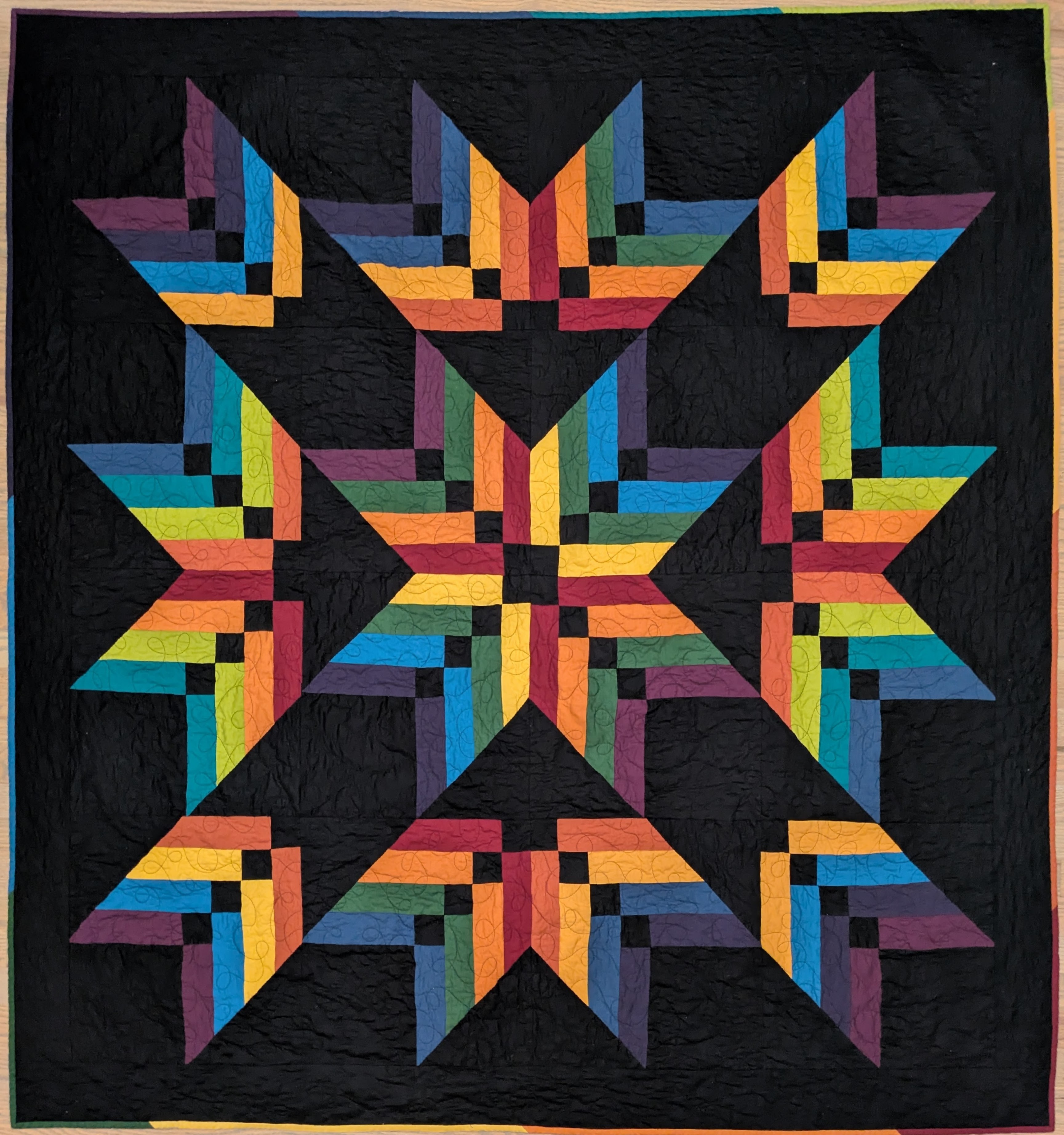 I was inspired by some solid color jelly rolls and wanted a pattern to highlight the bright colors. This project involved lots of experimenting with color combinations to find a balance.